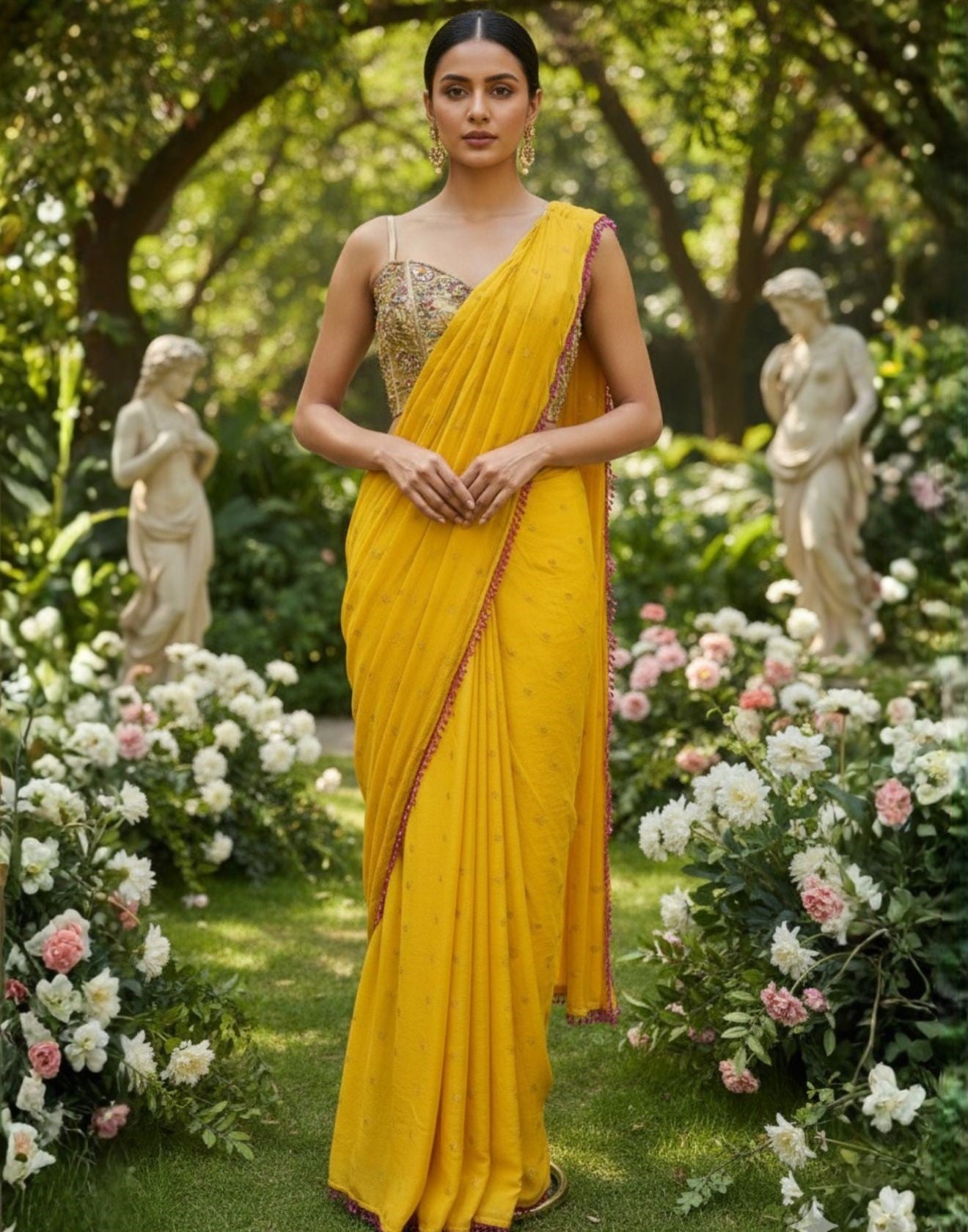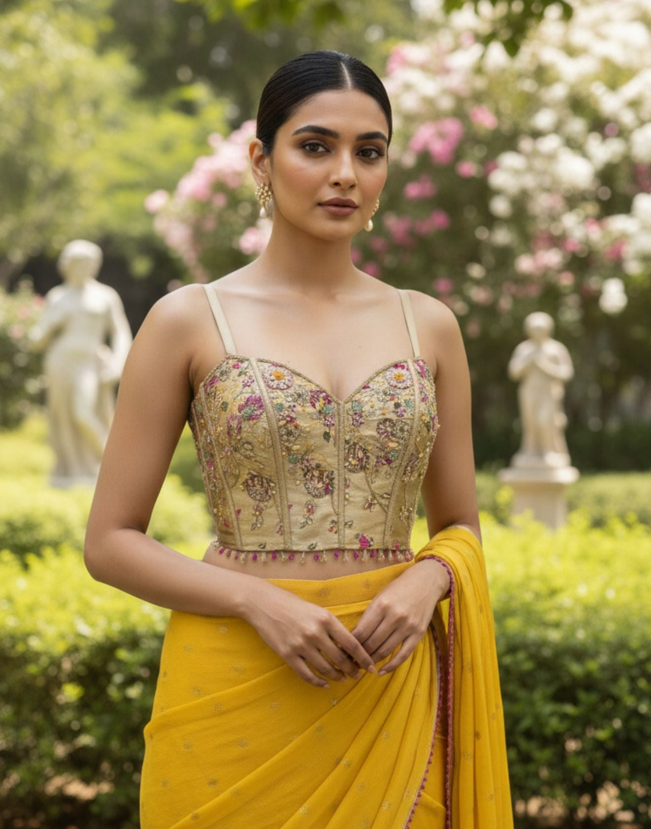 Please dry clean only when applicable. Please keep embroidered outfits in a muslin cloth to avoid damage