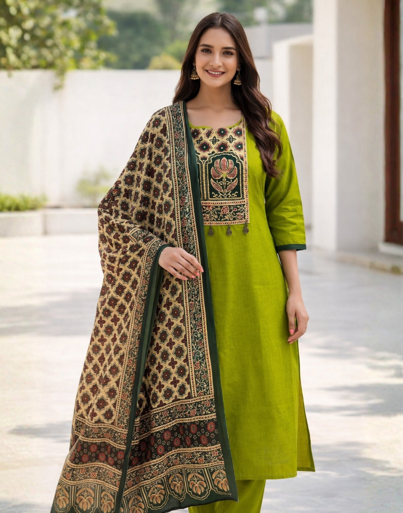 Please dry clean only when applicable. Please keep embroidered outfits in a muslin cloth to avoid damage