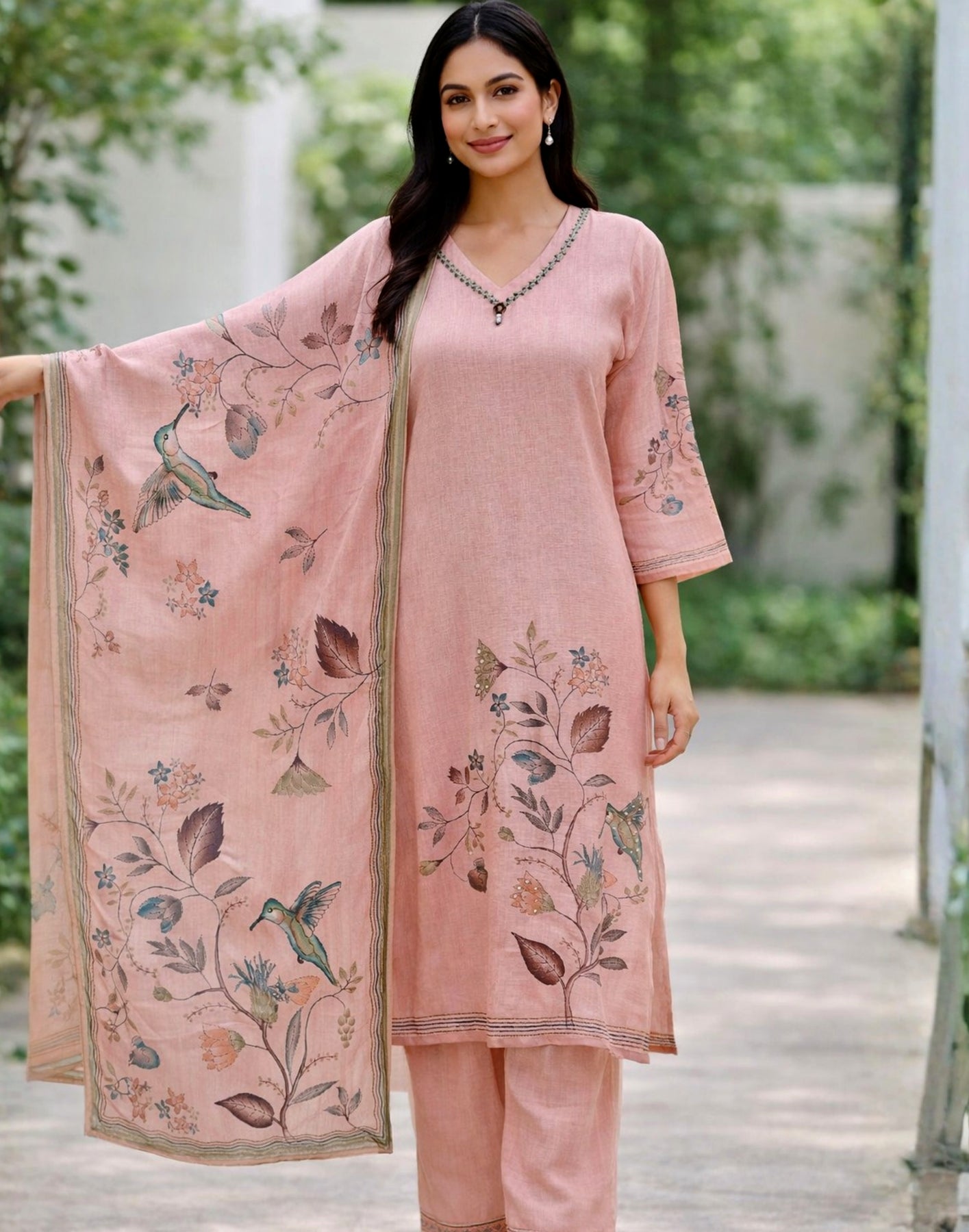 Please dry clean only when applicable. Please keep embroidered outfits in a muslin cloth to avoid damage