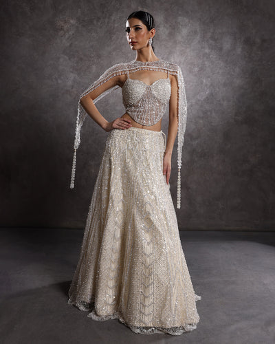 Take a bolder path and be the trendsetter in our Sparkling Champagne Embellished Fitted Lehenga Set. Take your pick!