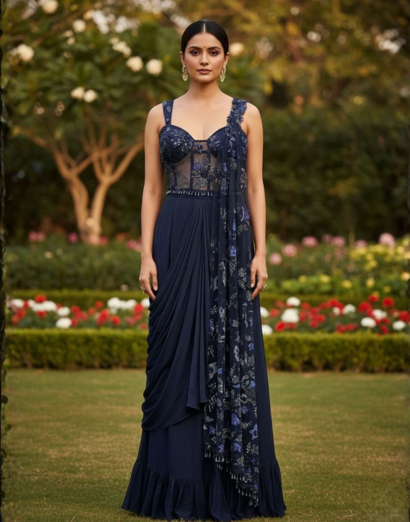 Please dry clean only when applicable. Please keep embroidered outfits in a muslin cloth to avoid damage