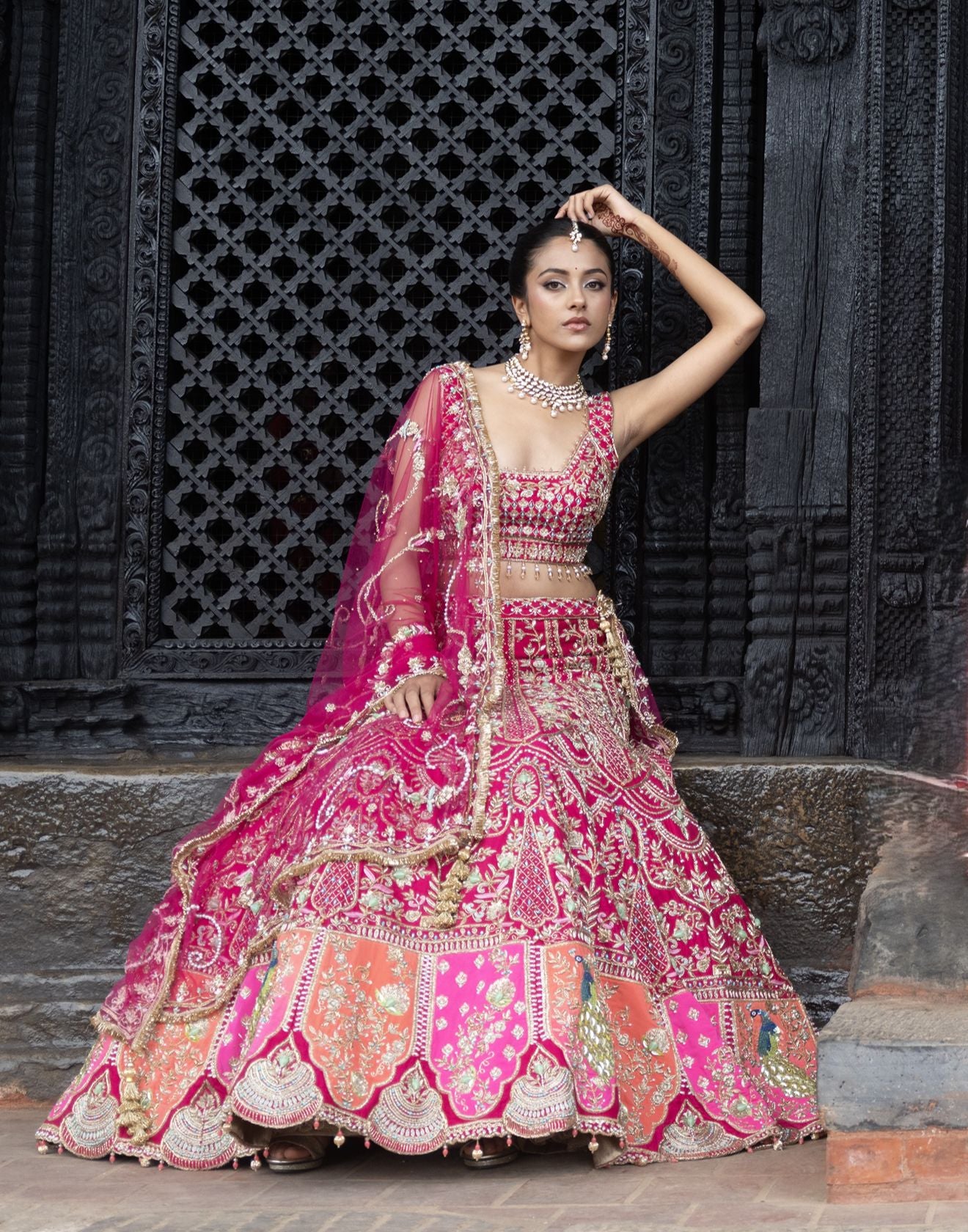 Please dry clean only when applicable. Please keep embroidered outfits in a muslin cloth to avoid damage
