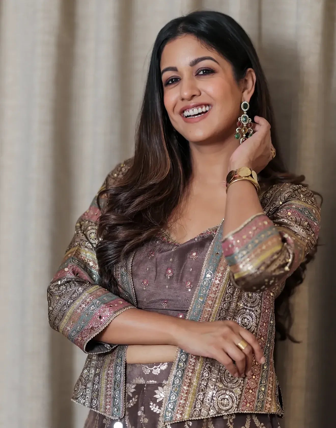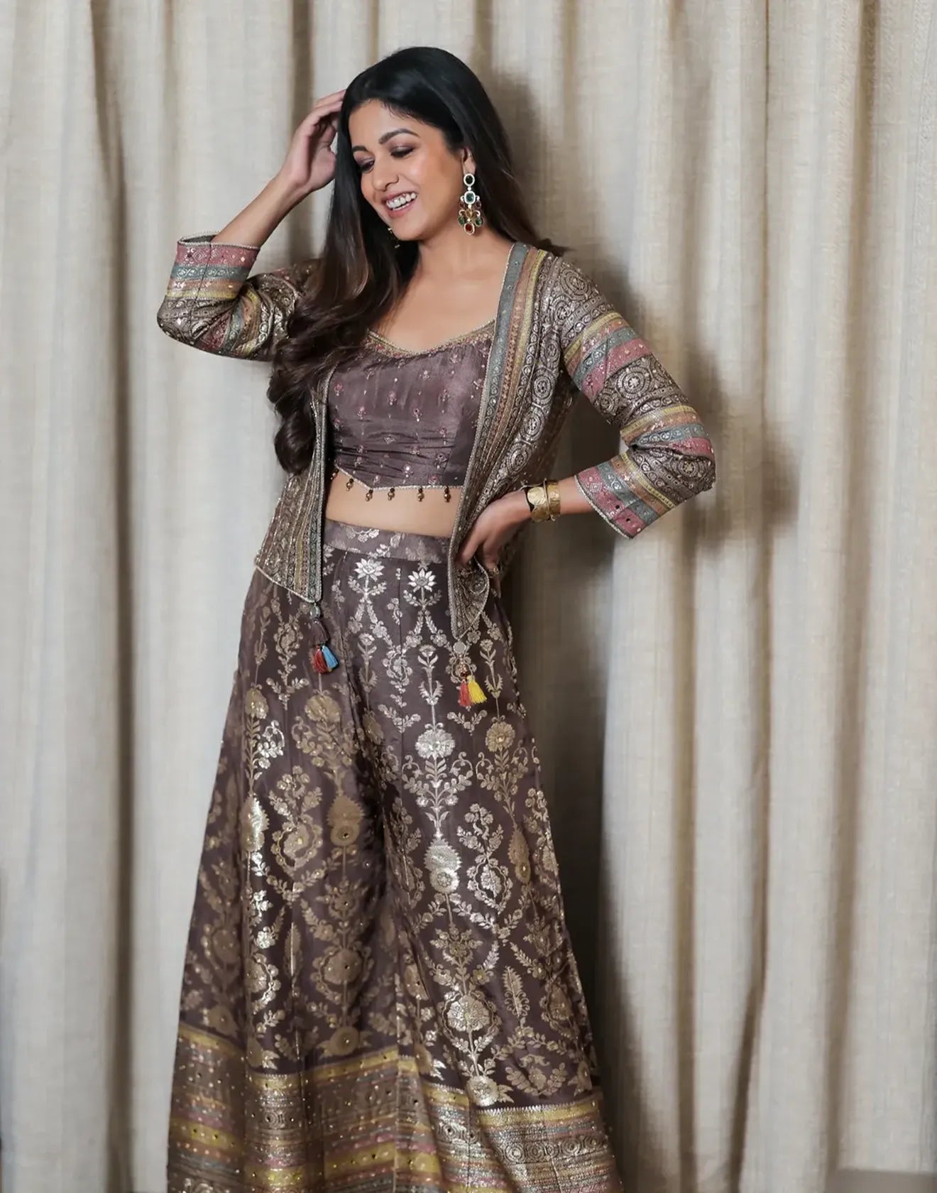 Please dry clean only when applicable. Please keep embroidered outfits in a muslin cloth to avoid damage