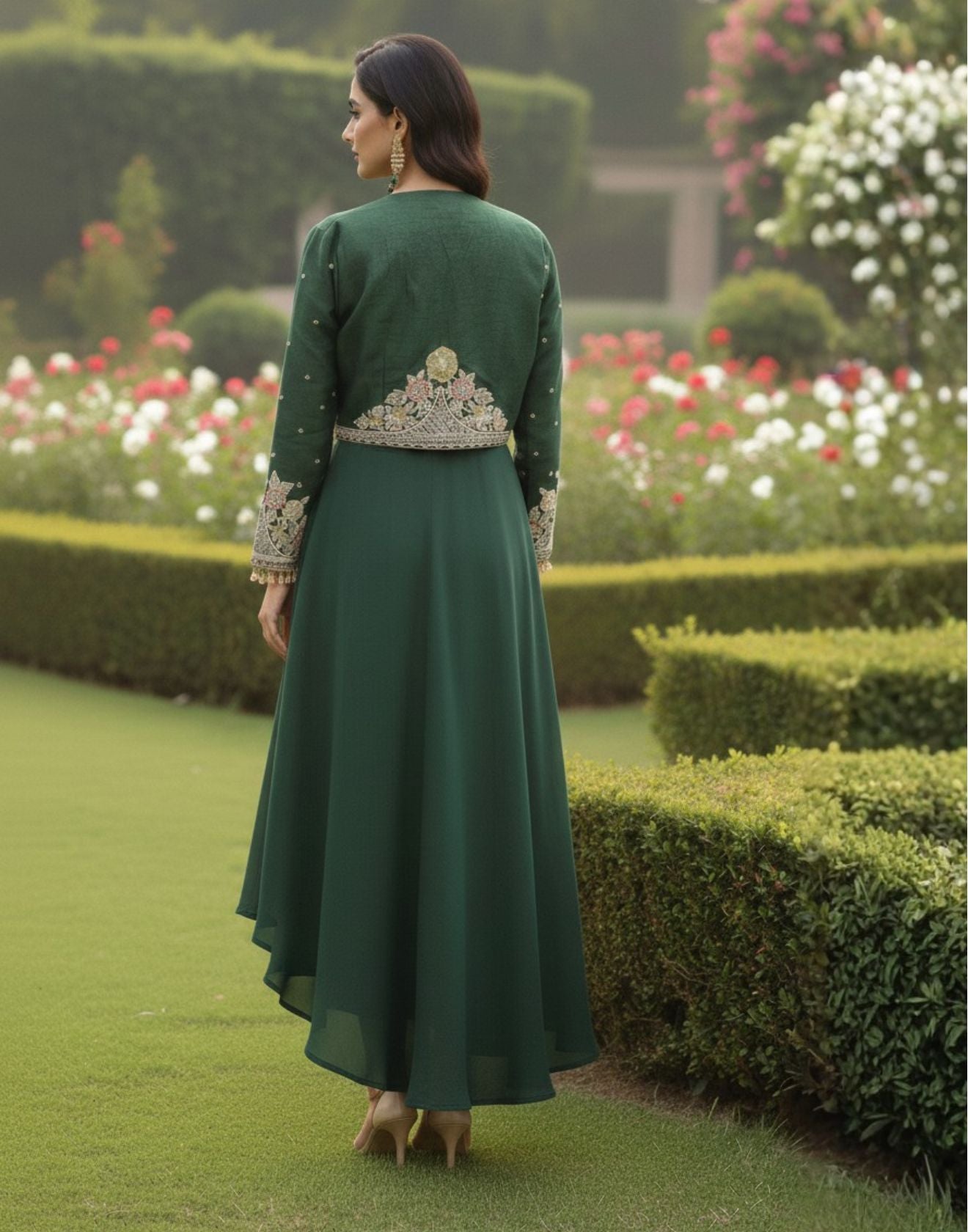 • Intricate floral and ornamental motifs are thoughtfully placed on the bodice and sleeves, adding depth, texture, and artisanal charm.