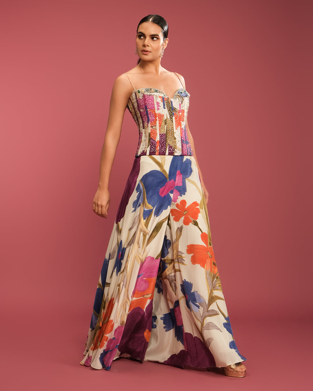 Please dry clean only when applicable. Please keep embroidered outfits in a muslin cloth to avoid damage